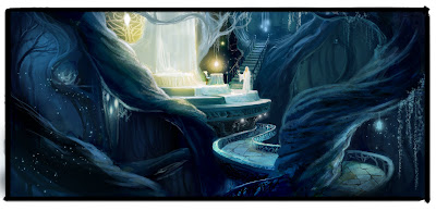 It's from a class assignment: to create a piece in the style of an existing property. In this case, Lothlorien in The Lord of the Rings.